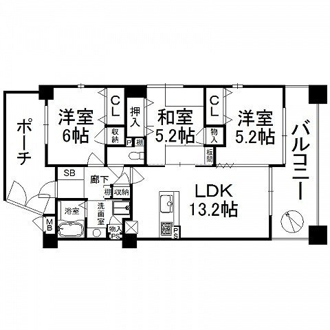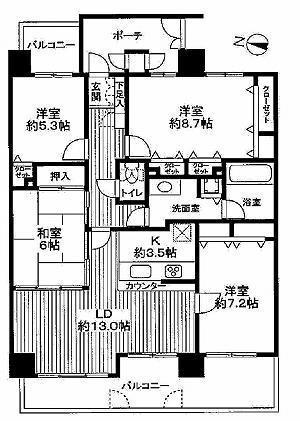 家族のための白い部屋 3LDK 角部屋 ペット..