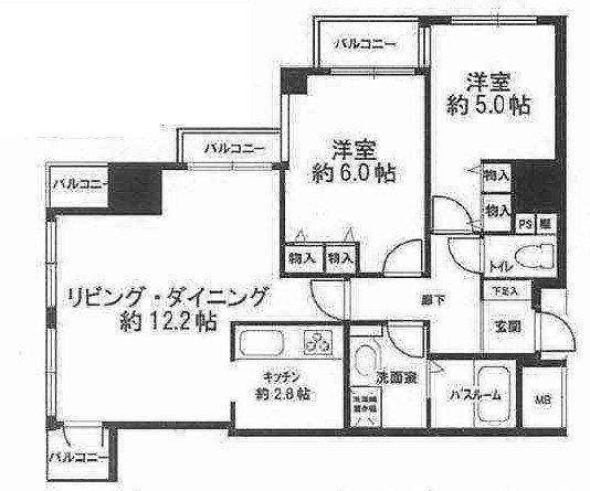 中央区角部屋日当たり良しの2LDKペット可中古..