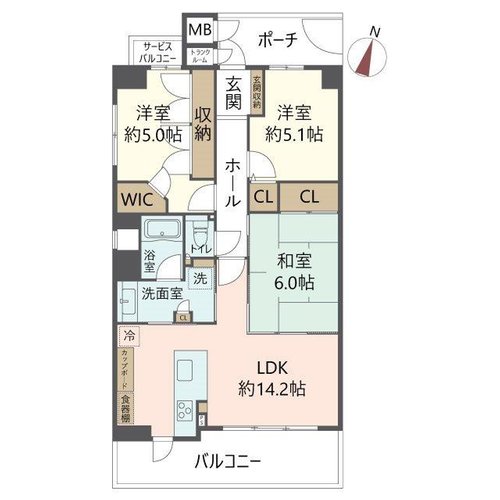 浴室に窓付き、三面バルコニー