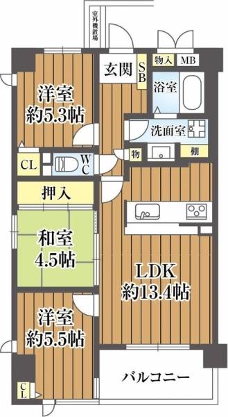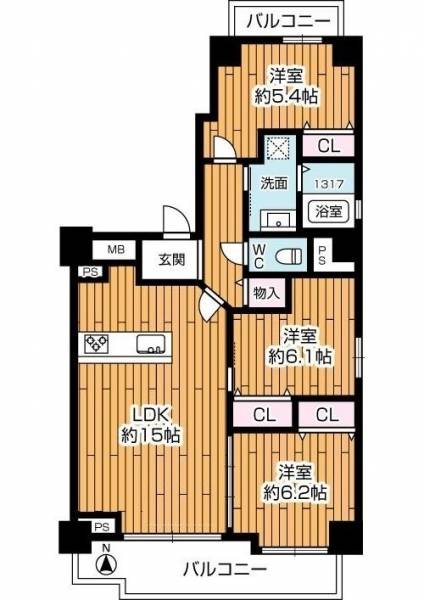 南東角部屋+両面バルコニー