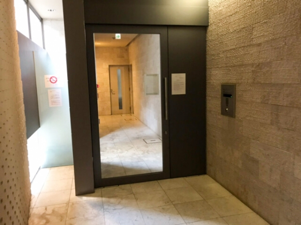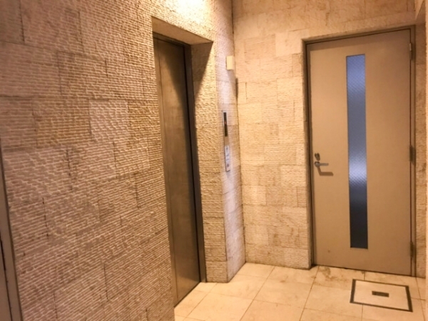 大理石調の床と相まって、高級感のあるエレベータースペースになっています。