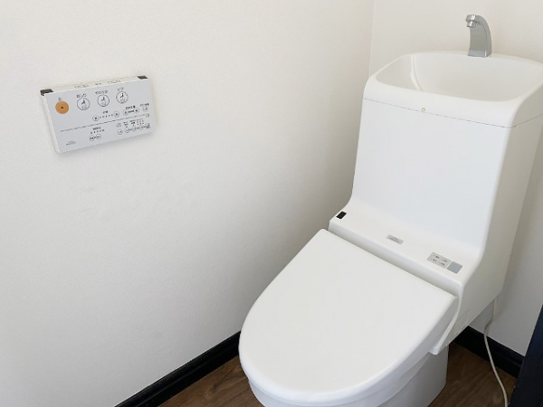洗浄便座付きシンプルでかわいい機能トイレがあります。