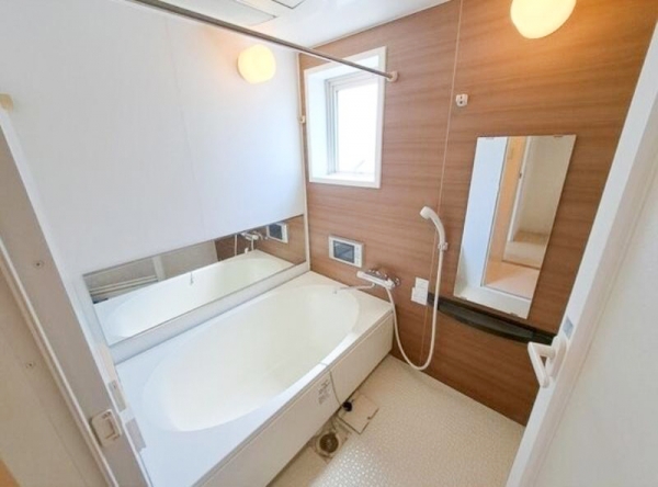 浴室は、木目調のナチュラルお洒落なデザインです。