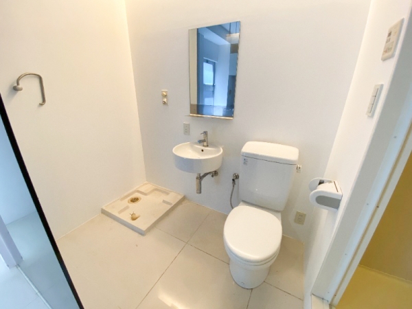 こちらが洗面台、トイレ、洗濯機置き場。