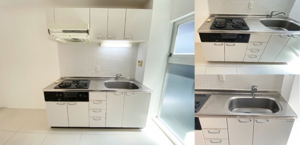 設備は、3口コンロ、グリル付きとなっています。