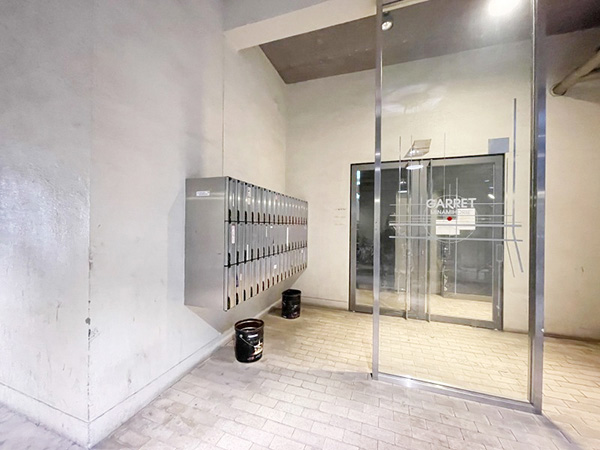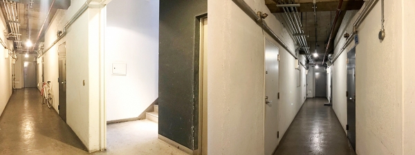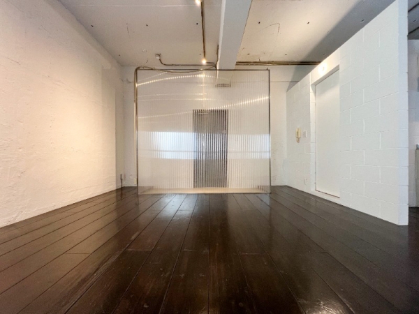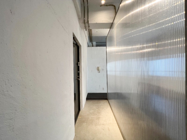 横長で広々したコンクリ打ちっ放しな土間・通路エリアとなっています。