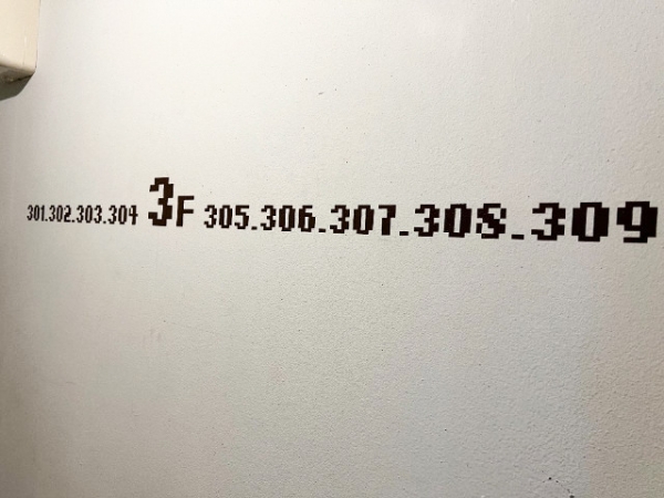 ドット風フォントで階数・部屋号室が刻まれています。