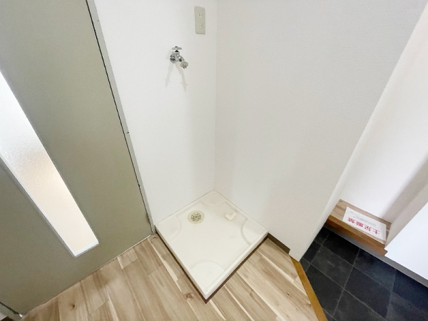 玄関を入るとすぐにあるのが、室内洗濯機置場です。