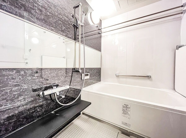 大理石調の壁がポイントの高級雨感あるお風呂になっています。