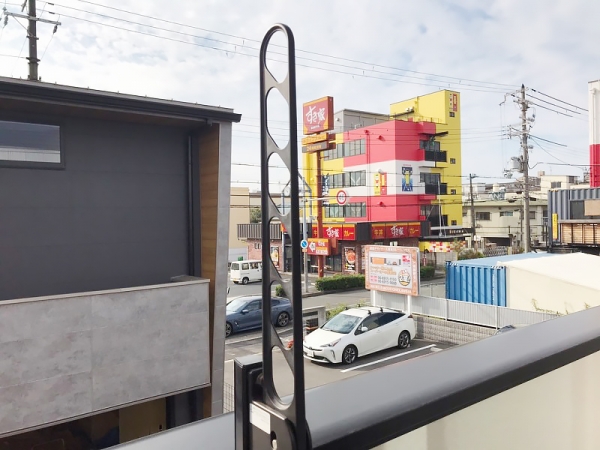 府道168号線沿いに建つガレージ付きのテラスハウス。