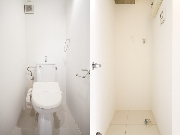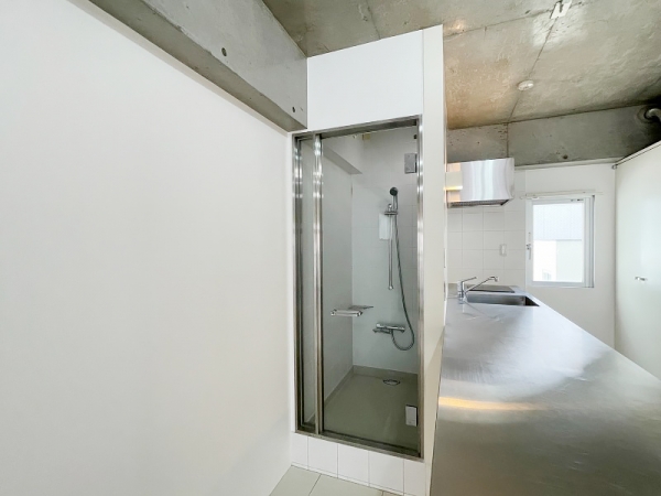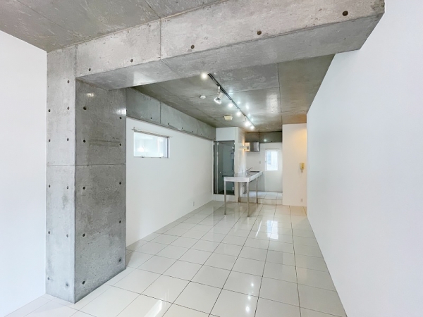 コンクリ打ち放しに、ホワイトな壁やタイルと