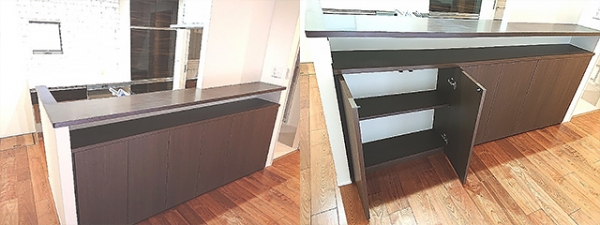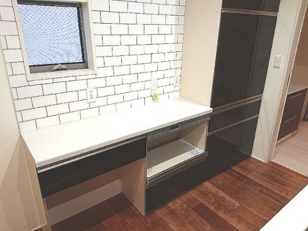 カウンターしたにも棚が備え付けで収納力は抜群。