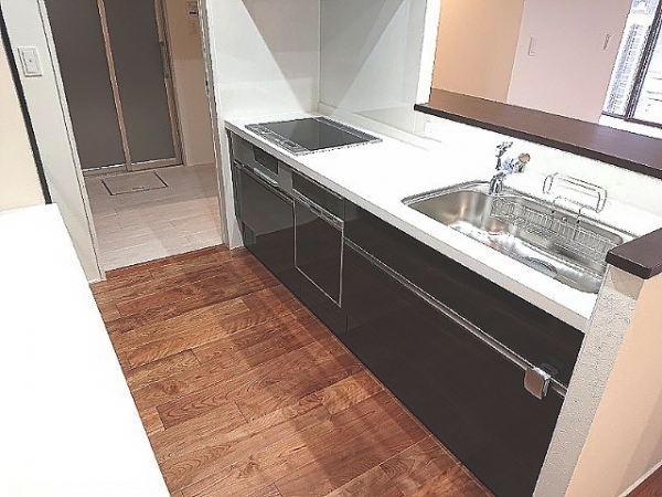 まず、玄関奥の扉を開けるとキッチンエリア。