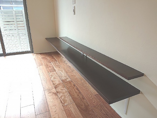 壁面には備え付けのテレビボード的な棚があり