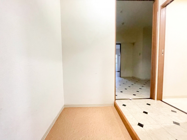 玄関の上り口と同じく、ホワイトとブラックのデザインフロアがお洒落な内装です。