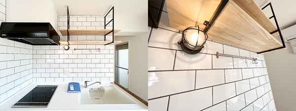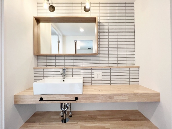 壁の長細タイルがまたおしゃれ感。