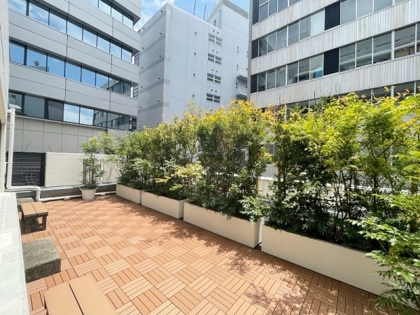 都会の森の横、オシャレで癒される空間です。