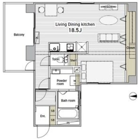 間取りを見ると、18.5帖と結構広々としています。