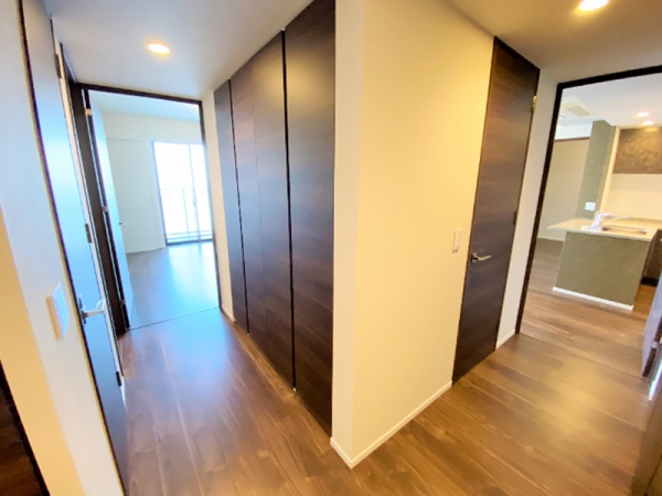 廊下に入ると扉が並んでおり、一方はLDK側へ