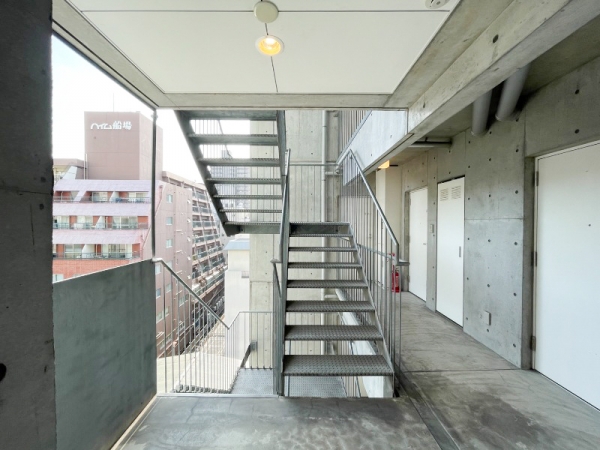 コンクリ調な内装に、鉄骨の外階段と無骨感がお洒落です◎