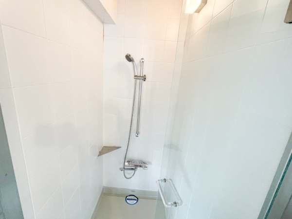 三角形な台もあるので、シャンプー置き場にも困りません。