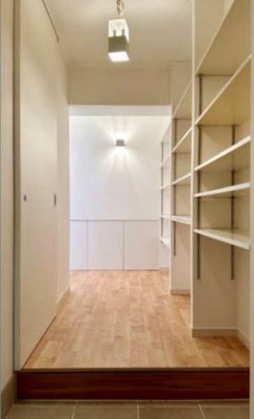 扉で隠れていますが、写真右側は全て収納やキッチンになっています。