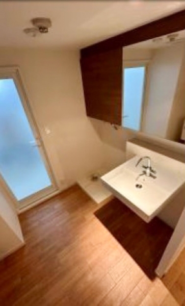 シンプルですが、木目ナチュラルで鏡の大きい洗面台です。