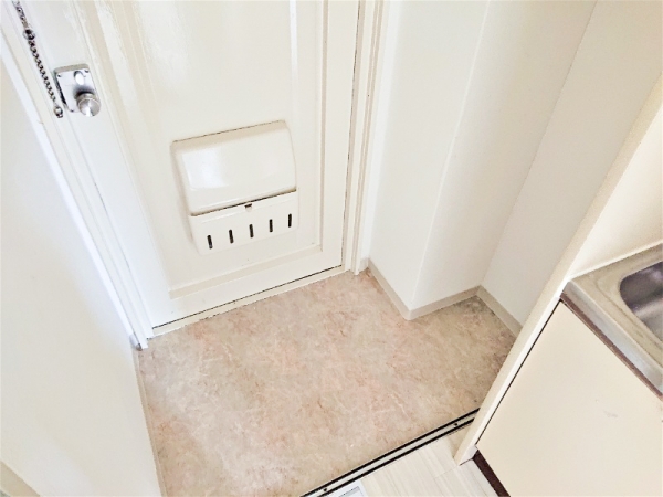 まるっとしたエントランス扉のデザインがレトロ可愛いポイントです。