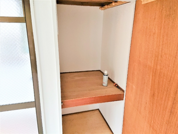 ちょうど収納やラックを置けそうなスペースがあるので、