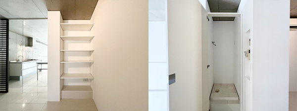 その裏側、出てすぐの部分には室内洗濯機置場が