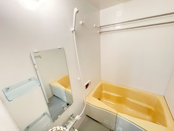 バスルームは黄色いバスタブが特徴的な