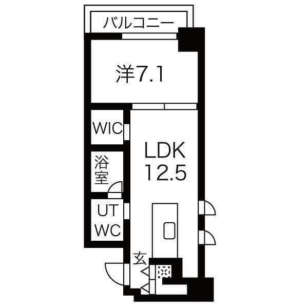 LDKも12.5帖と広々で洋室は7.1帖の広さ。
