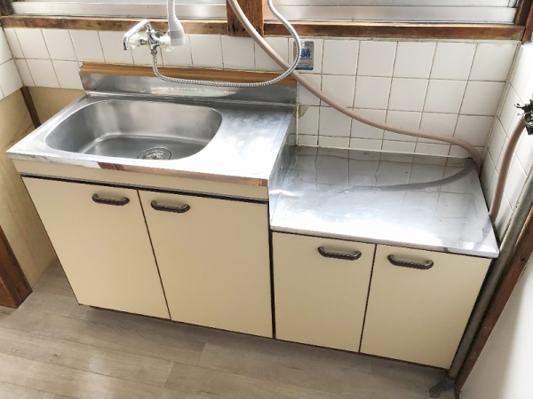 キッチンは大きめタイル貼りでレトロ。