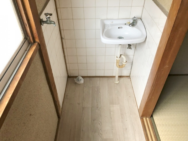 こちらは廊下部分。隅には小さな洗面台があります。
