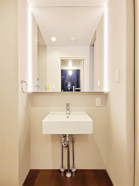 洗面台はシンプルなデザイナーズ定番の角ボウル。