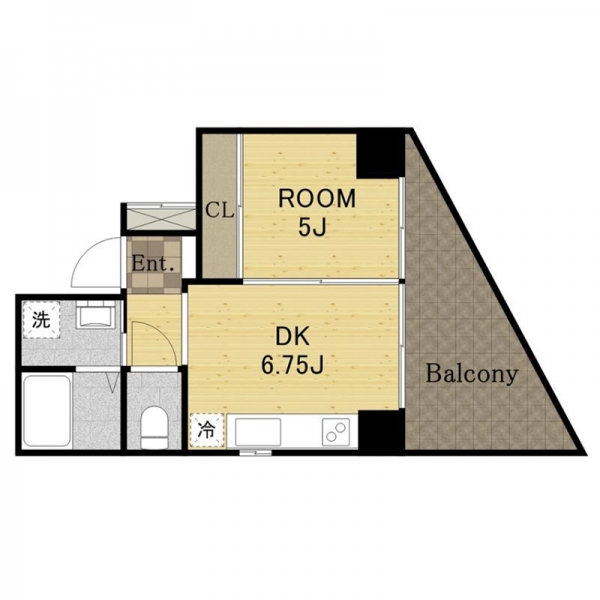 6.75帖のDKに5帖の洋室という作りとなっています。