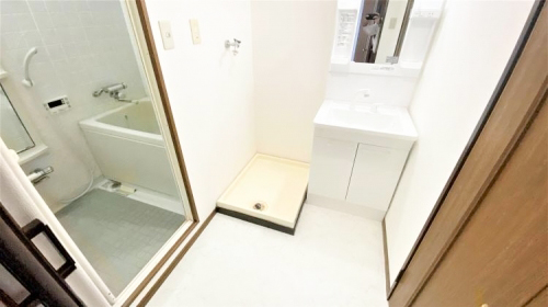 洗面脱衣所は、ホワイトで広めなホワイト空間になっています。