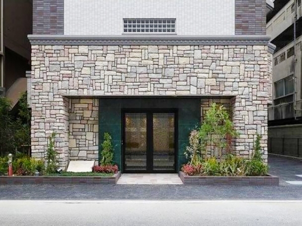 エントランス周りはゴツゴツで色合いの良い石レンガで