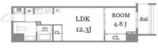 12.3帖のLDKと4.8帖の洋室という間取り。
