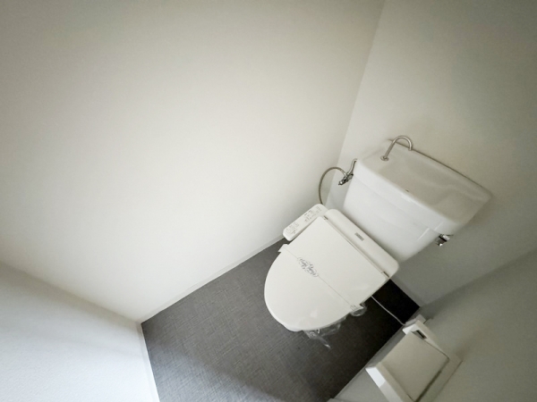 ホワイト壁とブラック床のツートーンなトイレになっています。
