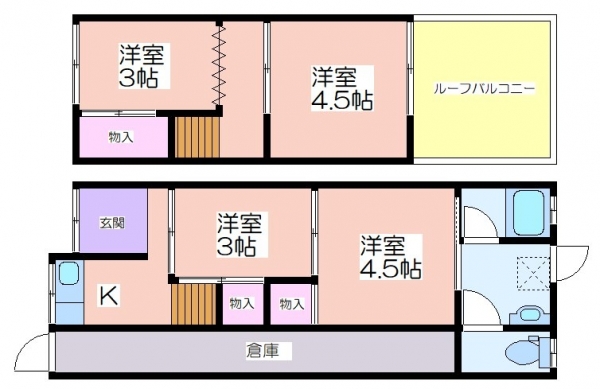 倉庫&ルーフバルコニー付きのテラスハウスです。