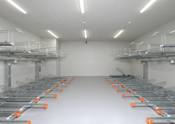 駐輪場は、屋根付きの室内になっています。
