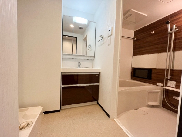 洗面脱衣所は、広々した清潔感ある空間です。