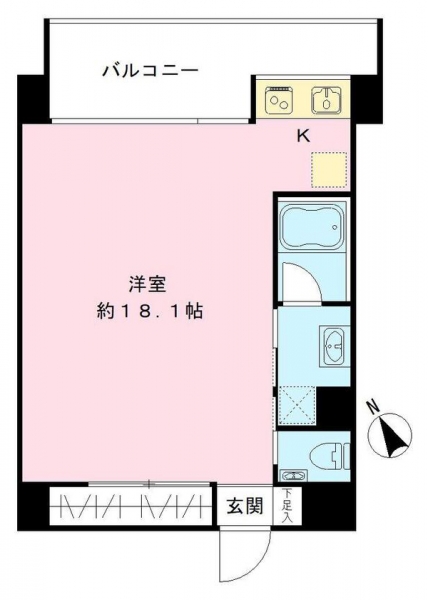 お部屋は、18.1帖の広々したワンルームです。