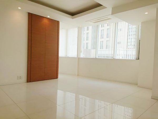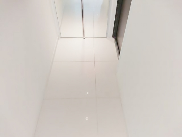 8.24帖の洋室があります。床は同じくホワイトタイル。