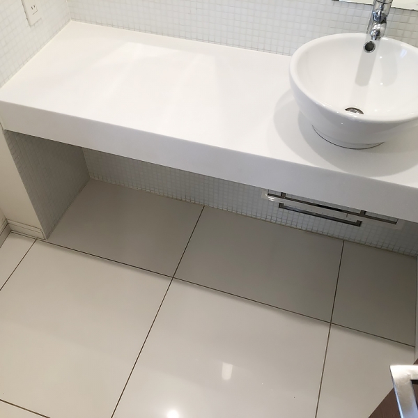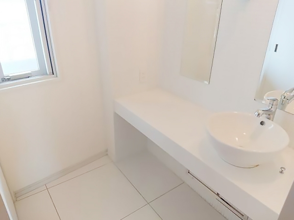 洗面ボウルの横はものを置いたりできる様に空けてあり
