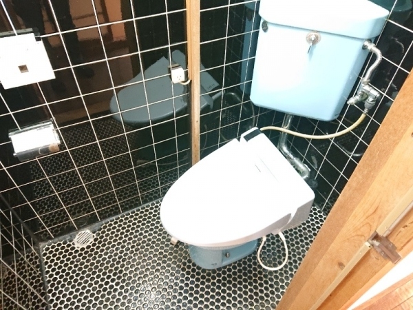 お手洗いは、ブラックタイルがお洒落な内装です。