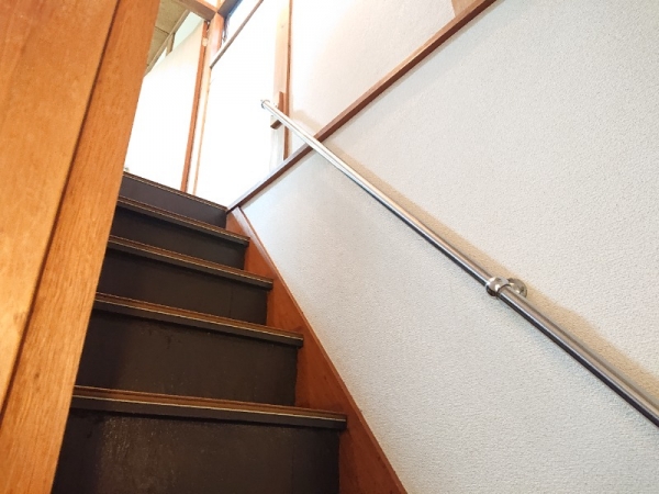 少し急な階段ですが、手すり付き◎