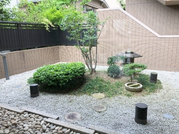共用エリアには、庭園のようなお洒落エリアがあります。