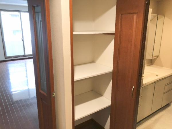 洗面台のすぐ横には、収納!